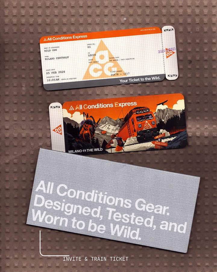 hey fam, it’s friday and i found some time to write again. As Cole just mentioned, it’s not that easy to take the time every week. From the frequency of HIGHEST FIVE you probably guessed it already… but it’s one of my New Year’s resolutions, so here we go. It’s interesting to see how ACG also kinda dominated my feed this week - with the radical Airflow, an all-black outfit for Jannick Sinner and now the Mental Athletic (Ultra) race aka installation. Is there a discussion? Tbh i waited for the naturalists to complain it’s an indoor course and kinda stupid. Honestly: it’s kinda stupid but it looks awesome. Kudos to MA and again to Amsterdam Berlin, the agency building the course. And obviously to every runner competing. I guess the 100k is still going!?